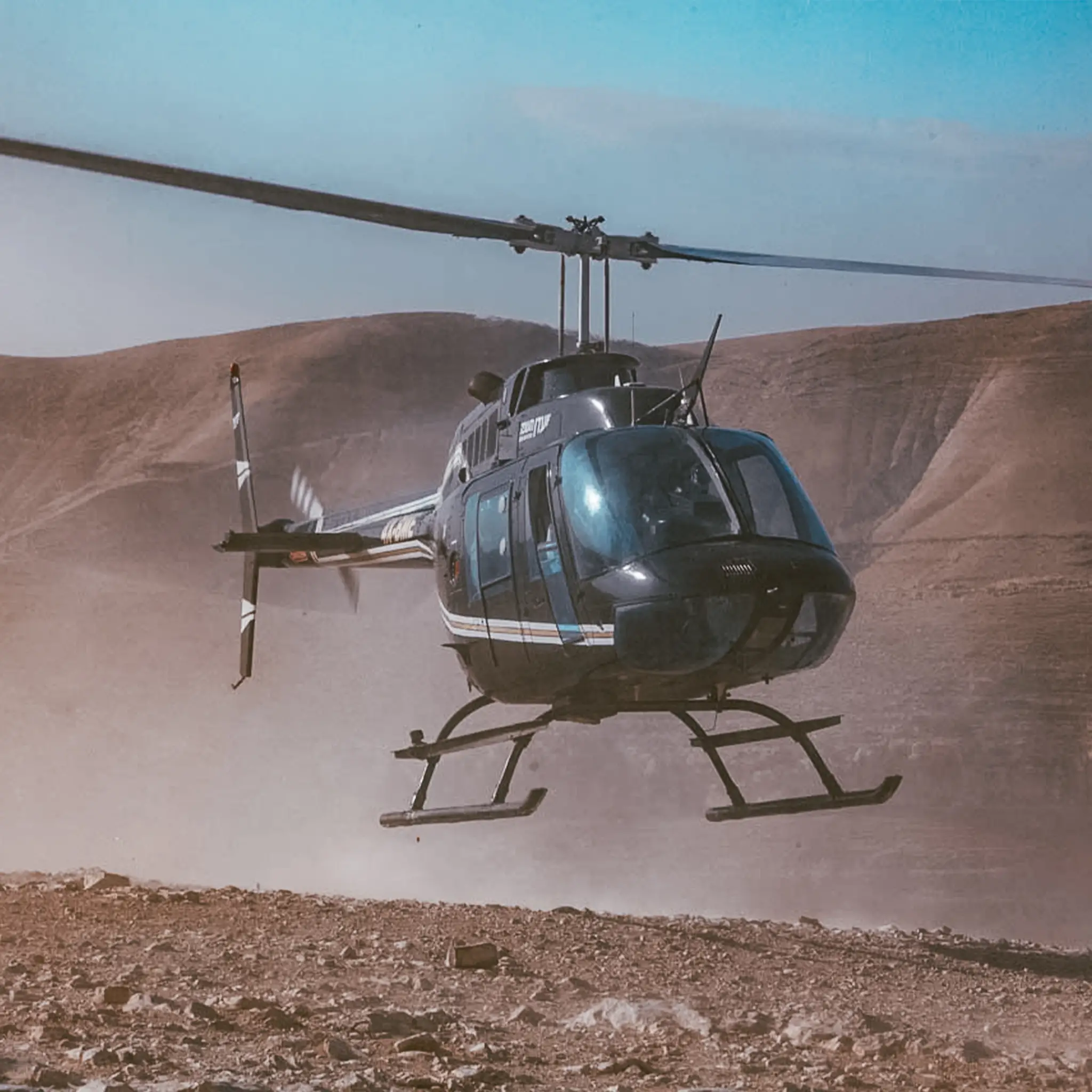 כחברת המסוקים האזרחית הגדולה בישראל, אנחנו מציעים טיסות חוויה בלתי נשכחות, מסלולי אטרקציות של פעם בחיים, הדרכות טיסה מקצועיות, עבודות אוויר בהתאמה אישית ופעילות מתקדמת בתחום ניסויי הטיסה.